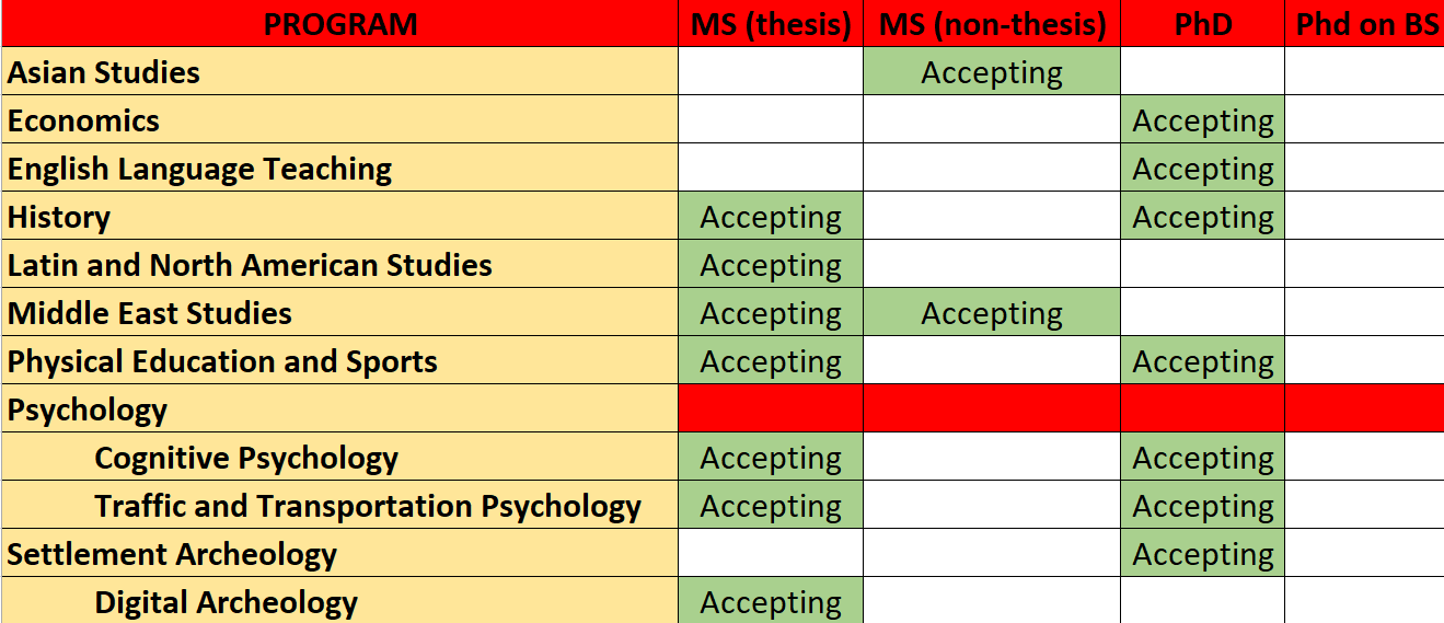 List of Programs Accepting Students for 2020/2021 Spring Semester