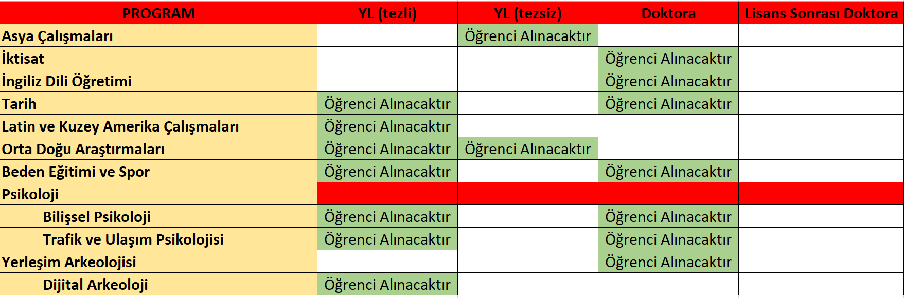 2020/2021 Bahar Dönemi için Öğrenci Kabul Edecek Program Listesi